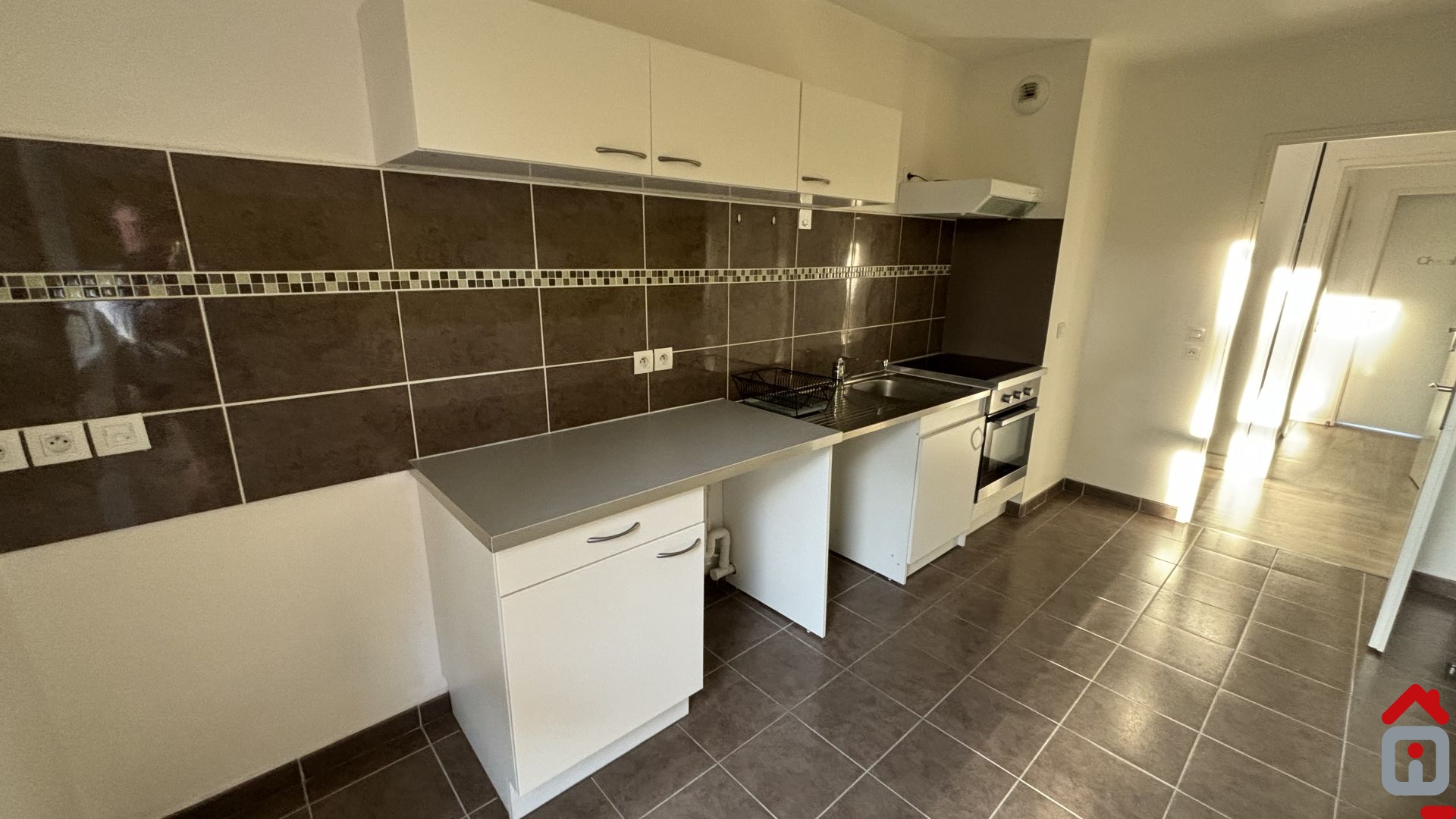 Entrée avec placard de rangement, cuisine équipée (meubles + électro manger) avec coin repas, séjour donnant sur 1 balcon.
