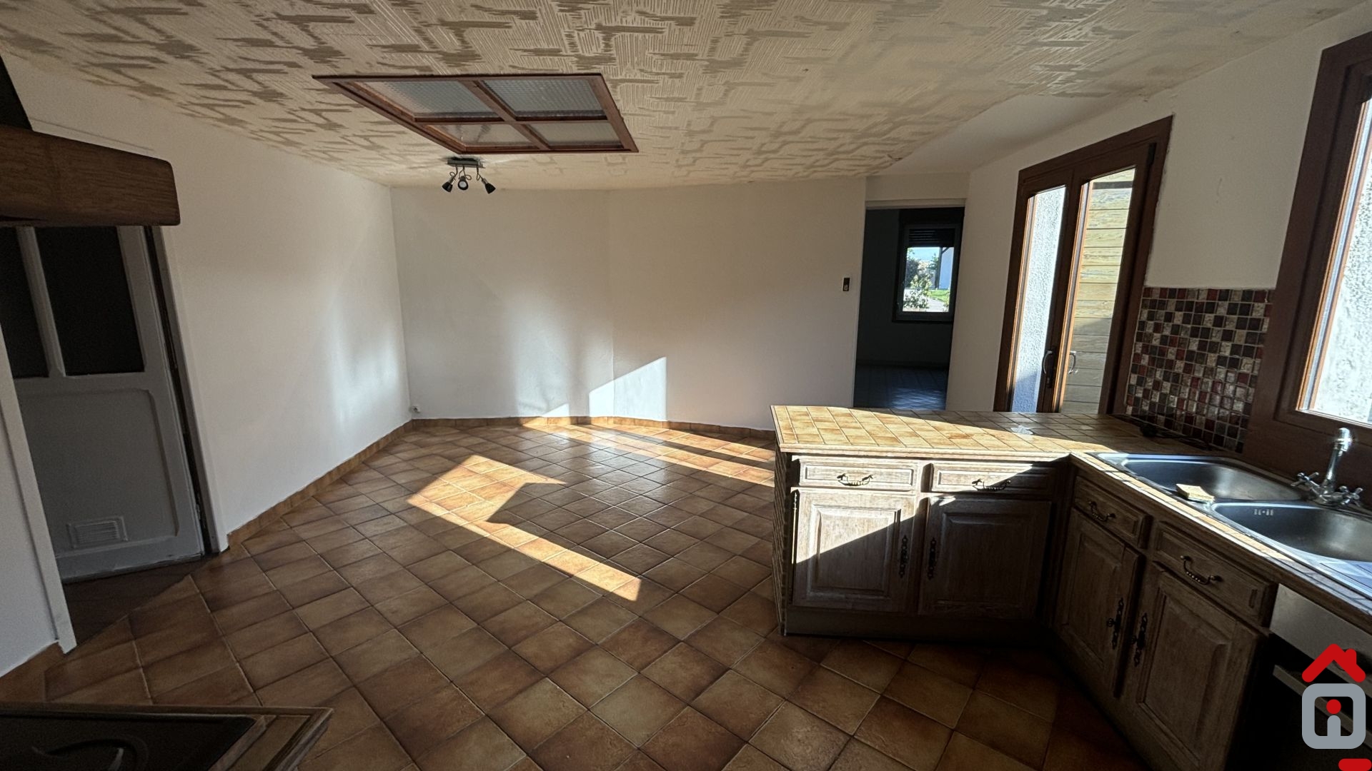 Maison double distribution, entrée, salon cheminée feu de bois, salle à manger, vaste cuisine équipée avec coin repas , toilettes séparés, salle de bain avec baignoire et douche, cellier/ lingerie.